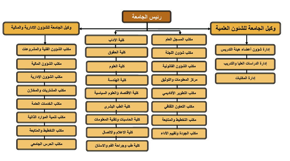 ووفقا للقرار رقم ( ) لسنة ( ) بشان الهيكل التنظيمي للجامعات ومؤسسات التعليم العالي كما يلي :